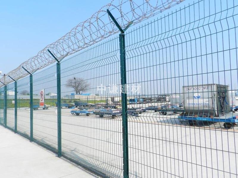 機場護欄網被廣泛應用在:機場、軍事基地、監獄等高安全場所的隔離防護、美化及防翻越工程!